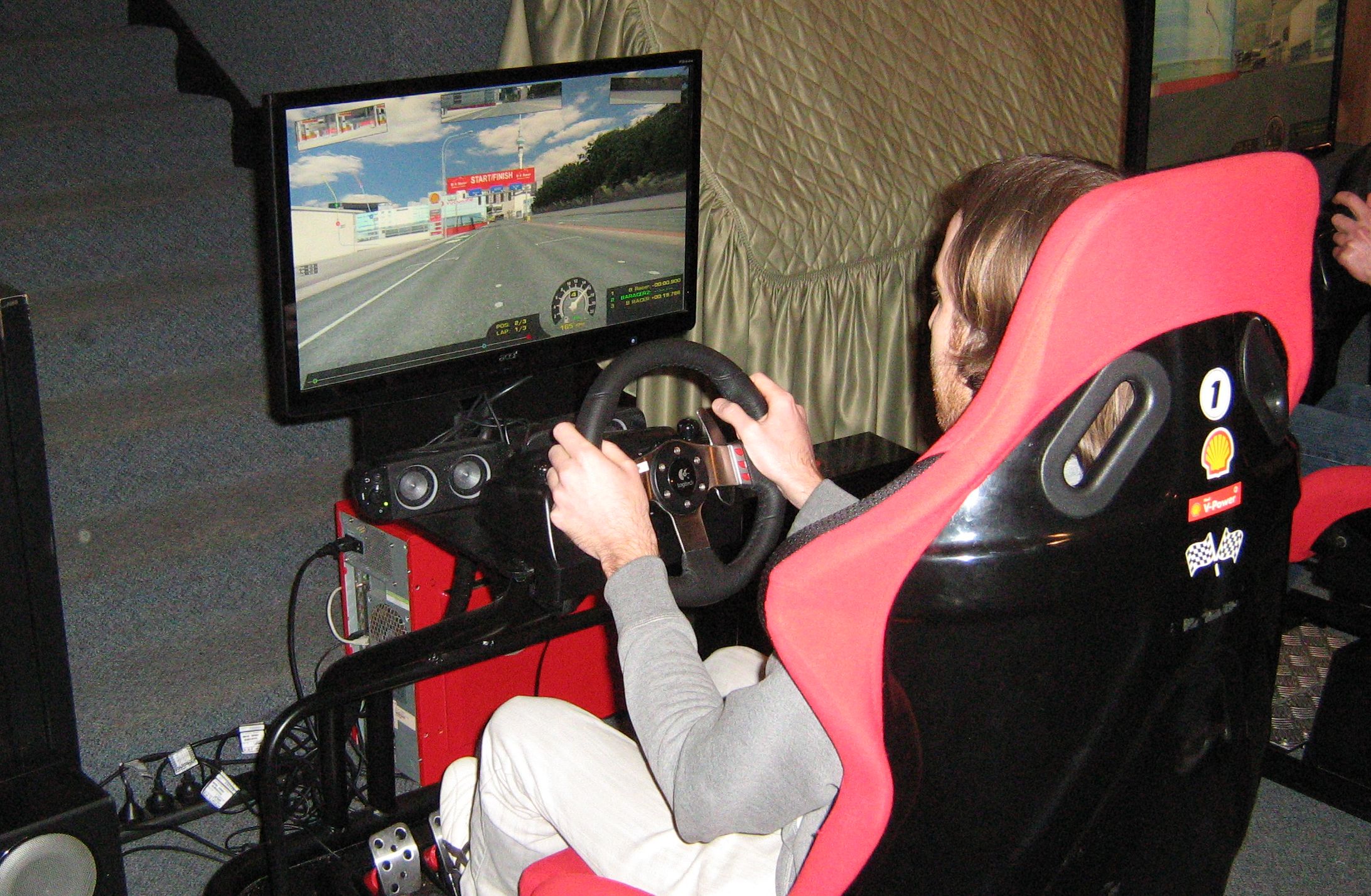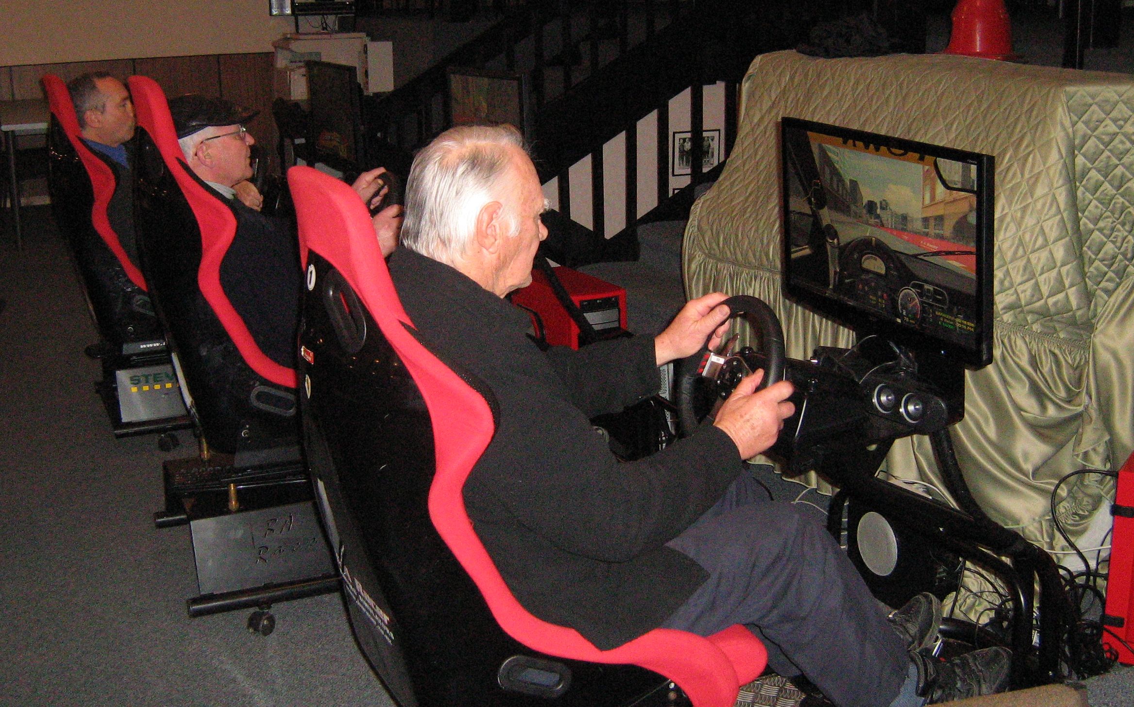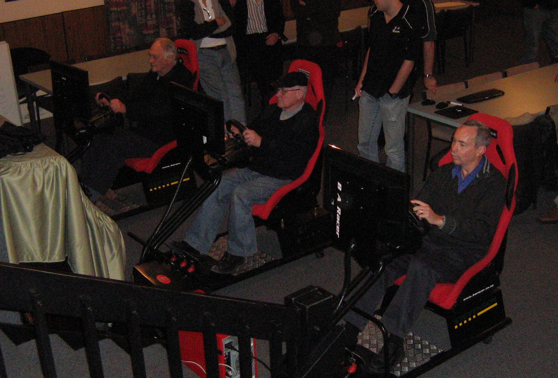 Driving skills being practiced on the racing simulators at the VCC Rooms in Penrose.