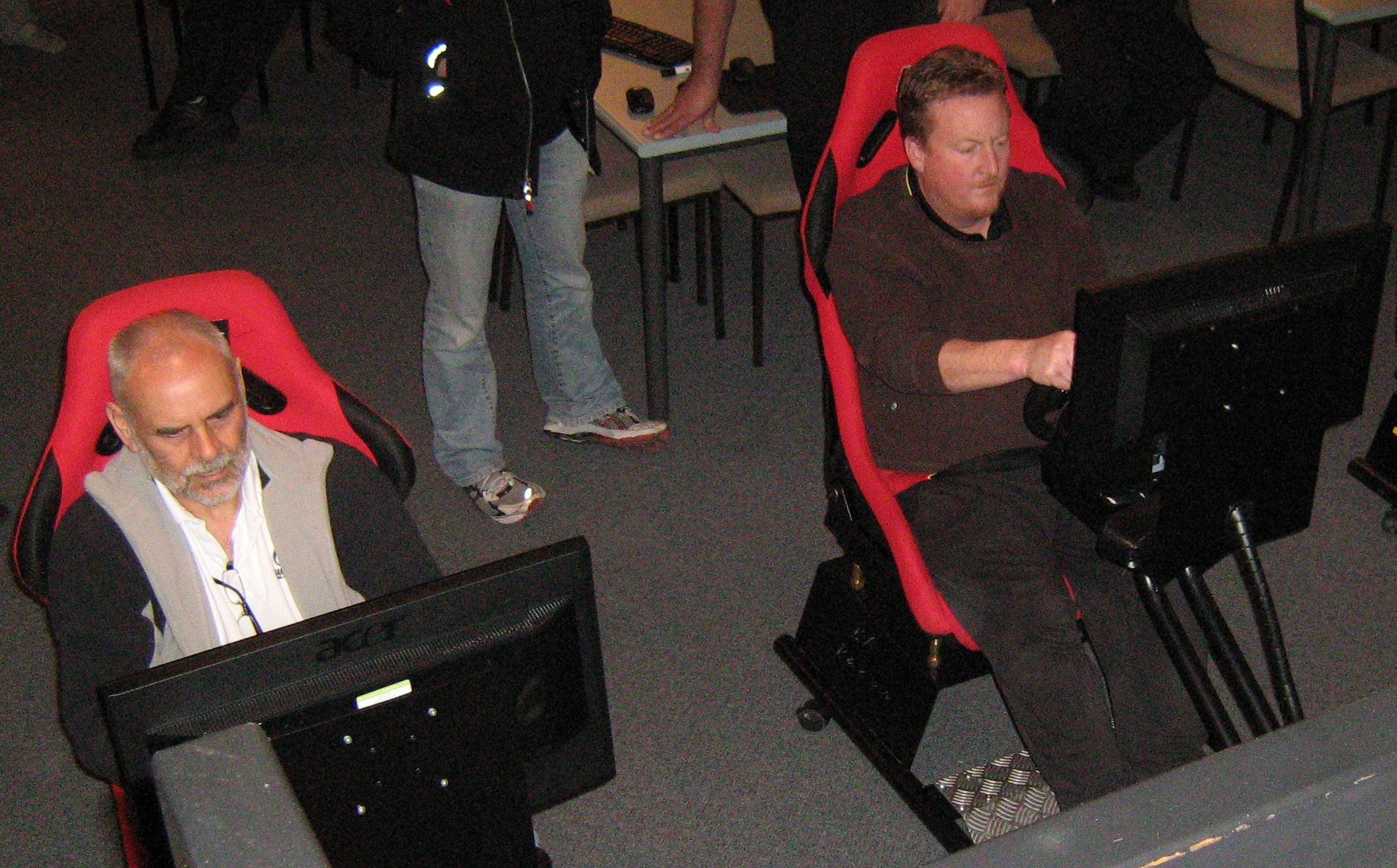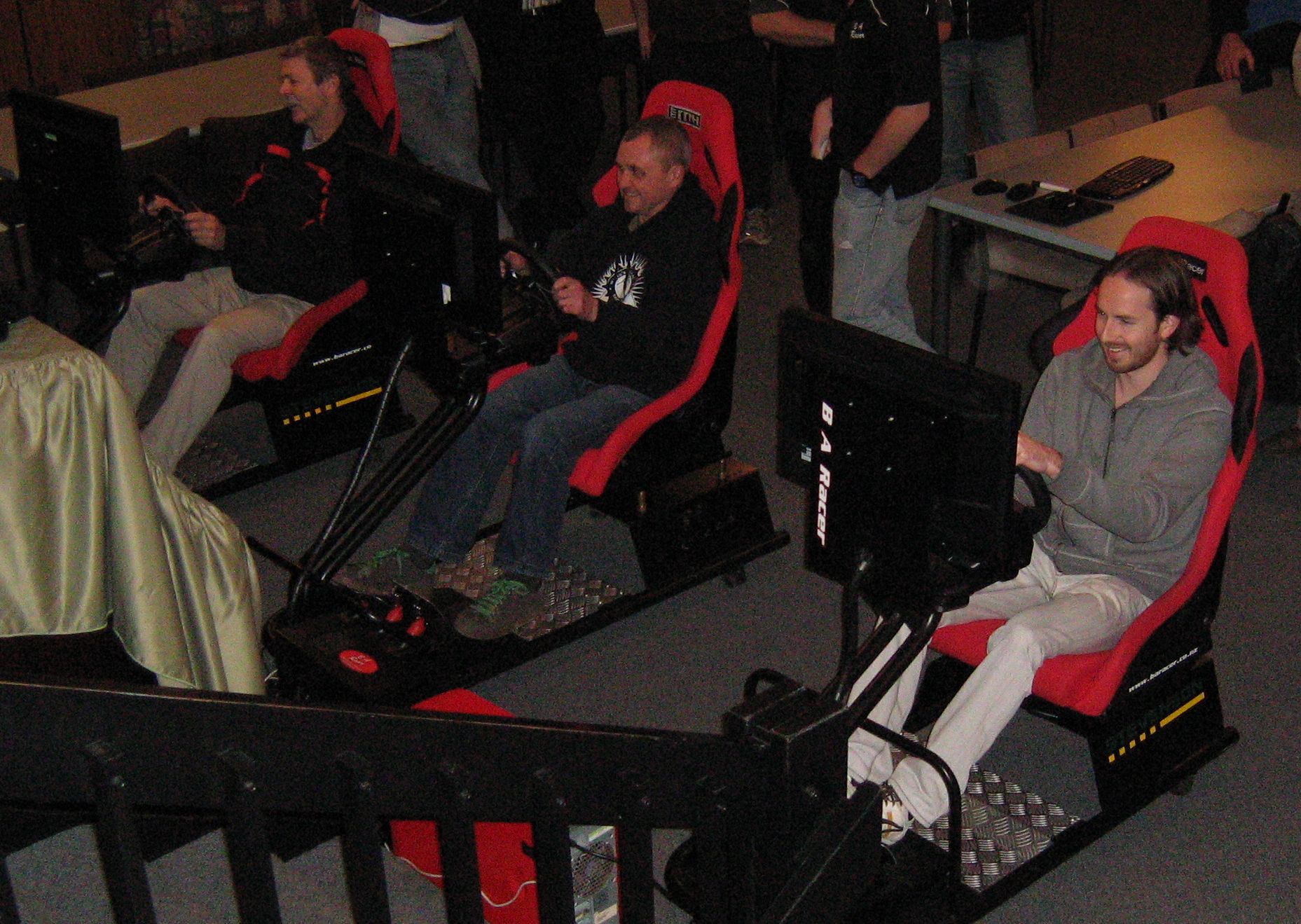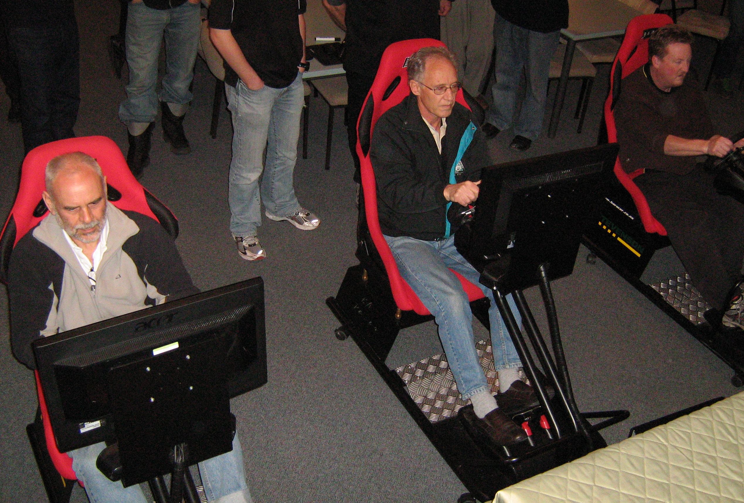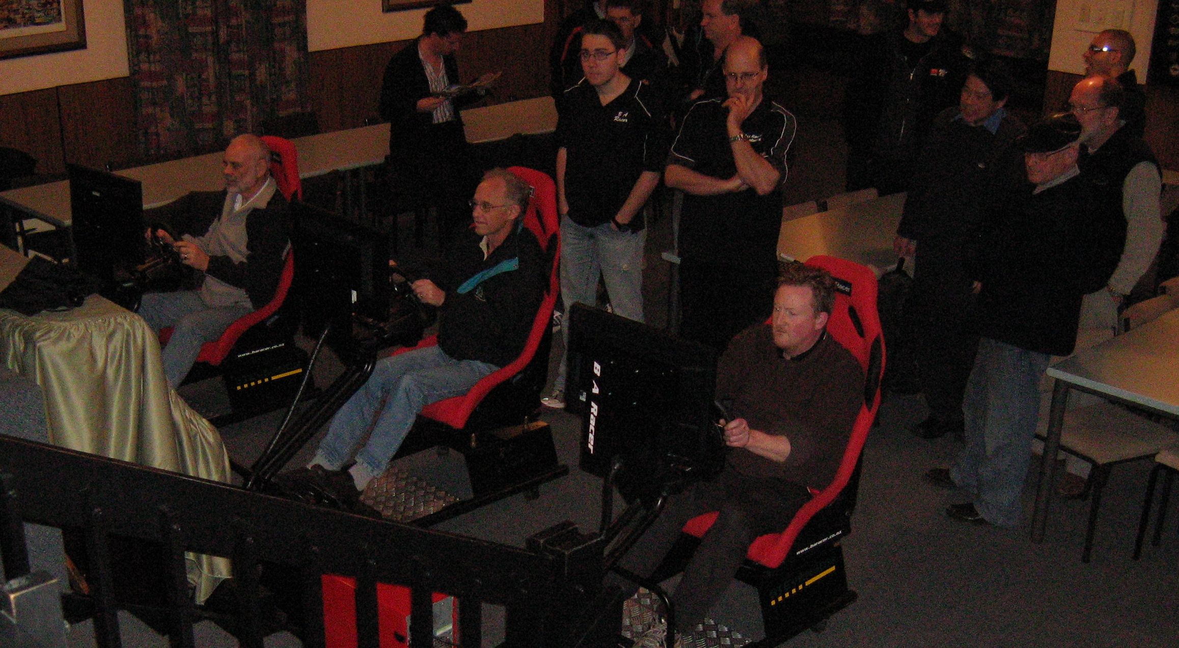 Driving skills being practiced on the racing simulators at the VCC Rooms in Penrose.